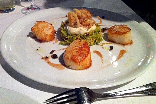 I was torn. As much as I like seafood, I am extremely picky about it, so I often just choose the old standbys that are easy to prepare and I know I’ll like…. salmon, redfish, tuna. But, I was feeling confident that Sandbar would not disappoint so I ordered the swordfish. J decided on the scallops. The swordfish was divine – perfectly prepared and served with some baby bok choy. J’s scallops were also expertly prepared and served with the winner of the night – delicious shredded brussels sprouts.